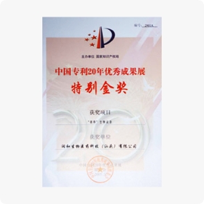 中國(guó)專(zhuān)利20年優(yōu)秀成果展特別金獎(jiǎng)
